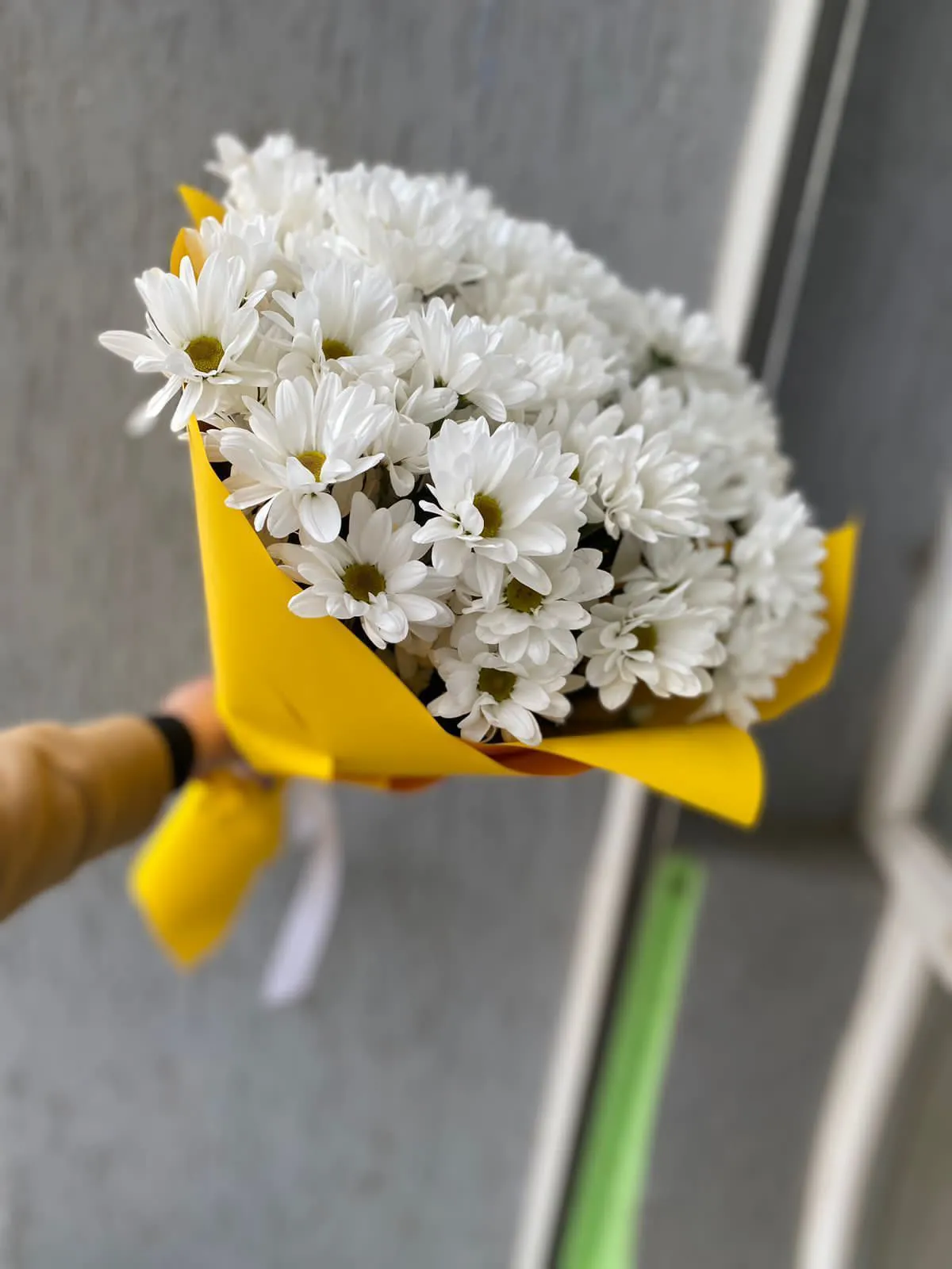 Букетом из белых ромашковых хризантем вы всегда сможете порадовать любимого человека. В любое время года этот букет принесет весеннее настроение. Легкость и приятные чувства обеспечены.