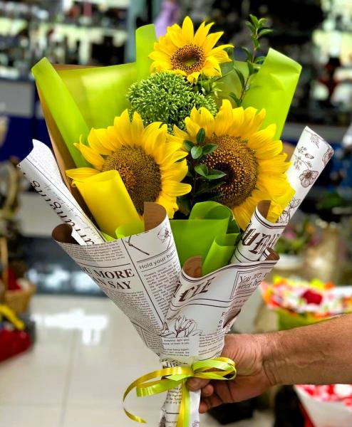 Букет из подсолнухов – это воплощение солнца и радости. Яркие, золотистые цветы не только придают настроение, но и символизируют свет, тепло и счастье. Такой букет идеально подойдет для любого повода: будь то день рождения, юбилей или просто так, для поднятия настроения.