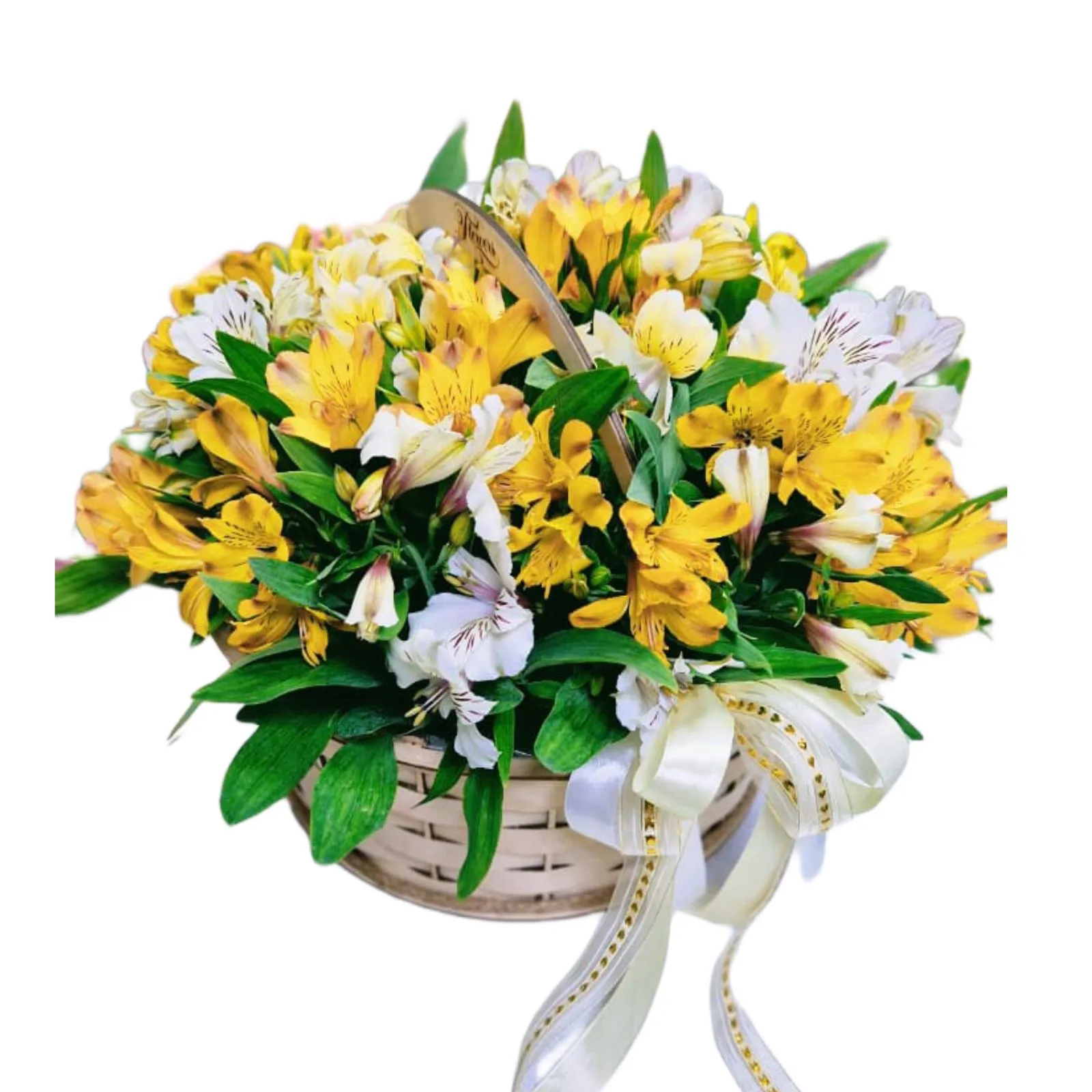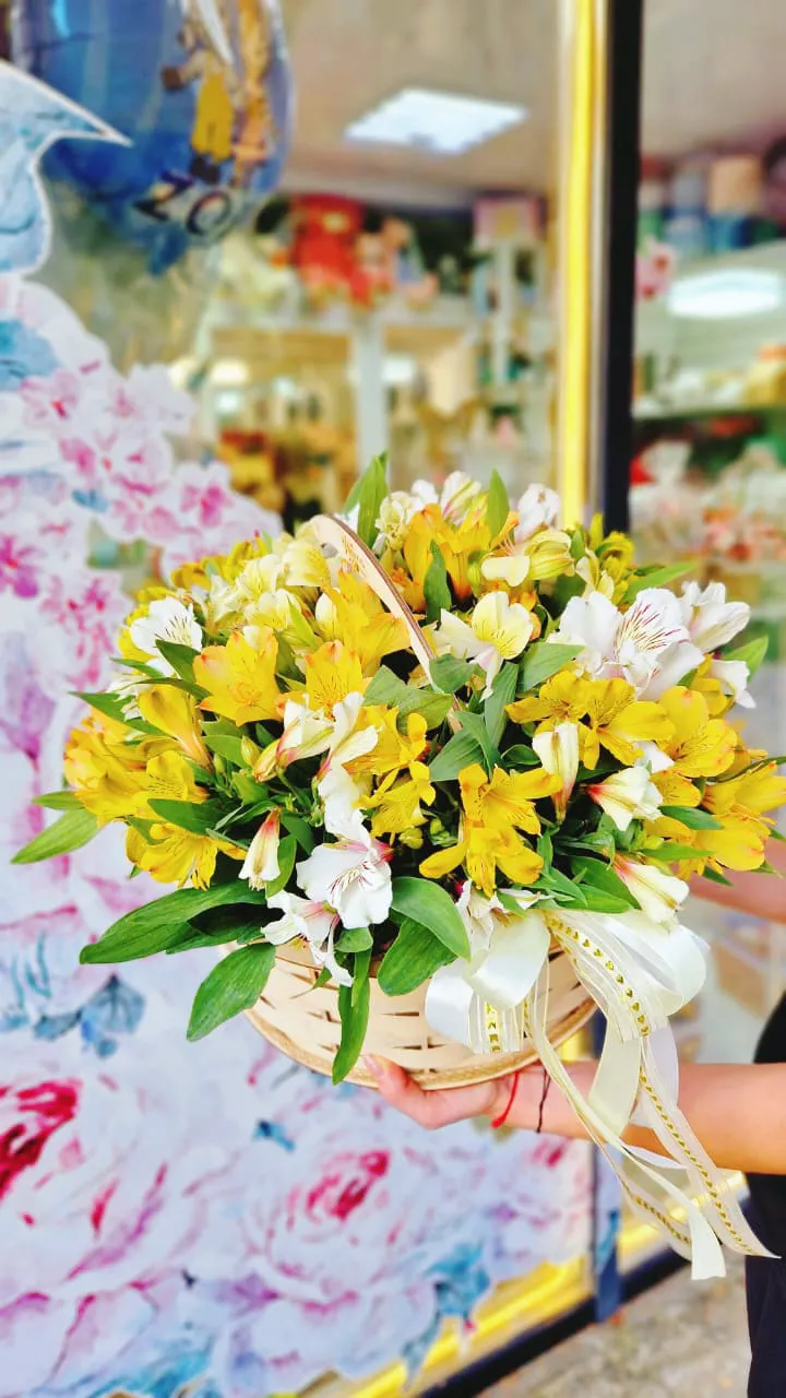 Состав: альстромерии,зелень оазис,корзина