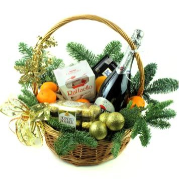 Состав: конфеты Raffaello, конфеты Ferrero Rocher,мандарины, шоколад,напиток на выбор, нобилис, новогодний декор, корзина