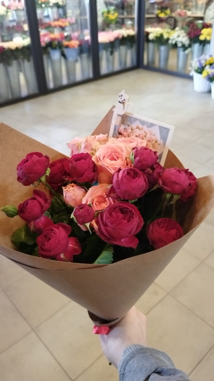 Погрузитесь в мир утонченной красоты с нашим великолепным букетом из кустовой розы. Эти миниатюрные, но невероятно выразительные цветы олицетворяют нежность и элегантность, создавая удивительное настроение в любое время года. Легкий сладковатый аромат роз создаст волшебную атмосферу уюта и романтики, делая его идеальным дополнением к любому торжеству.  Каждая роза расставлена с заботой и любовью, подчеркивая их естественную красоту и создавая гармоничное сочетание форм и цветов. Добавленные зелёные элементы дополняют образ, придавая букету свежесть и лёгкость.